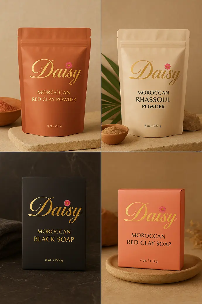 “At Daisy Cosmetics, we honor tradition. Every formulation is made with authentic Moroccan ingredients, ensuring genuine results you can see, feel, and trust.Our promise is wellness from the skin outward, with formulations that nurture your skin while uplifting your spirit.”