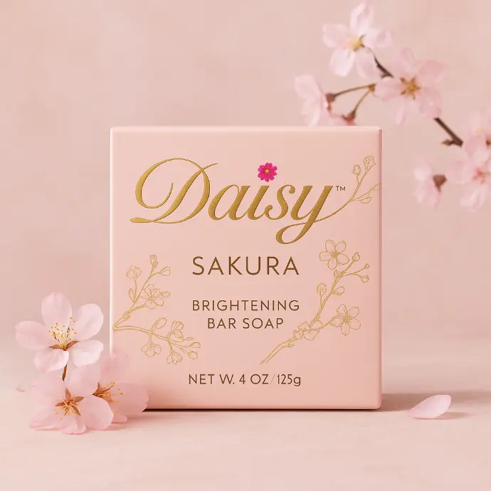 The Daisy™ Sakura Brightening Bar Soap lathers like silk, washing away dullness, leaving only calm radiance.